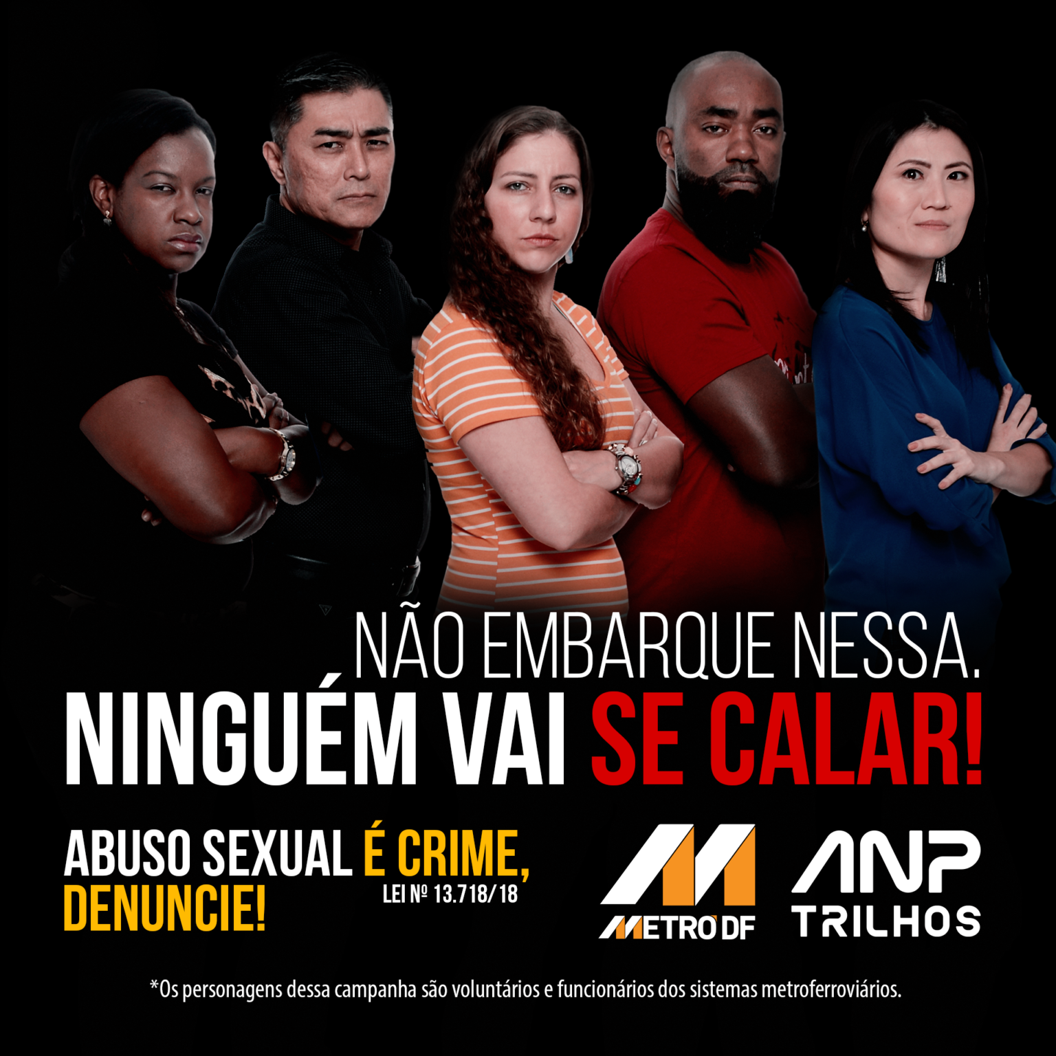 A campanha desenvolvida pela ANPTrilhos e os operadores metroferroviários foi realizada com personagens que são funcionários dos sistemas metroferroviários. Pessoas que trabalham no atendimento aos passageiros e participaram da ação voluntariamente. As peças são ilustradas com frases: “Não embarque nessa. Ninguém vai se calar!”, seguidas da inscrição “Abuso sexual é crime. Denuncie!”, entre outras.